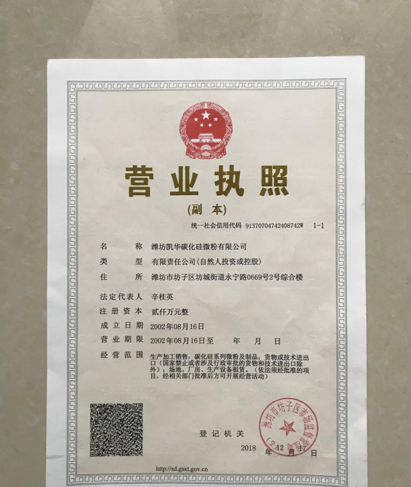 濰坊凱華碳化硅微粉有限公司成立于2002年,國家高新技術(shù)企業(yè),公司占地40畝,標(biāo)準(zhǔn)廠房19000平方,辦公樓、研發(fā)處2000平方,年生產(chǎn)能力3萬噸。一直從事陶瓷級微粉的生產(chǎn)銷售,所生產(chǎn)的超細(xì)碳化硅微粉具有純度高、粒形好、穩(wěn)定性強(qiáng)等特點(diǎn),主要用于反應(yīng)燒結(jié)、無壓燒結(jié)、硅碳棒新工藝、重結(jié)晶燒結(jié)、蜂窩陶瓷、機(jī)車制動裝置、研磨拋光、金屬防腐表面噴涂、納米隔熱保溫材料等領(lǐng)域。標(biāo)準(zhǔn)產(chǎn)品有:F240、F1200、W40、W28、W20、W14、W10、W7、W5、W3.5、 W2.5、W2、W1.5、W0.5、5S、D3E、100F、RS07、RS100及整形高密度系列綠碳化硅微粉......